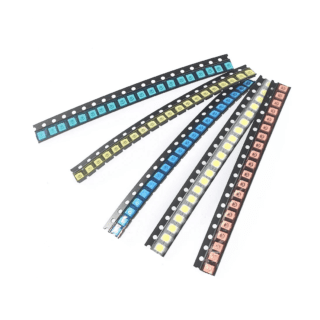 LED SMD 0603 de alta eficiencia lumínica. Paquete de 100 unidades en cinco colores, perfecto para circuitos electrónicos compactos y señalización.