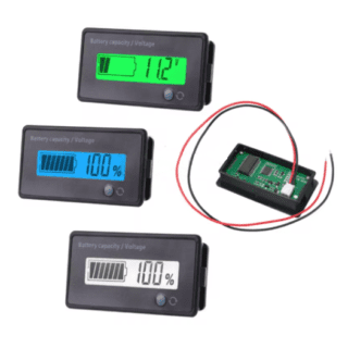 El voltímetro batería 12-84VDC con pantalla verde permite medir de forma precisa el nivel de voltaje en baterías, asegurando un control constante en aplicaciones de energía.