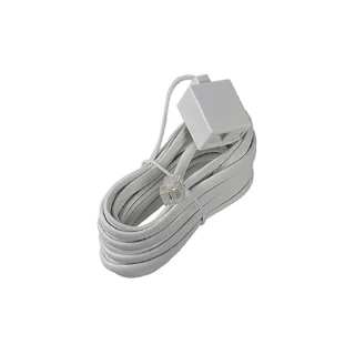 Cable de extensión para teléfono blanco RJ-11 macho a hembra, fácil instalación y señal estable.