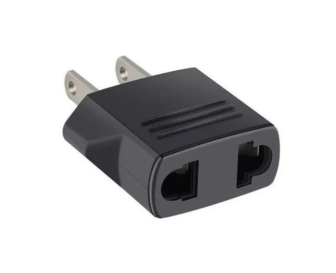 Adaptador de Clavija Europeo a Americano, compacto y ligero. Convierte enchufes de tipo europeo (UE) a estándar americano (USA). Ideal para viajes y uso doméstico.