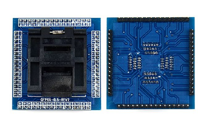 Para más adaptador de prueba qfp64 consulte la sección: circuitos integrados