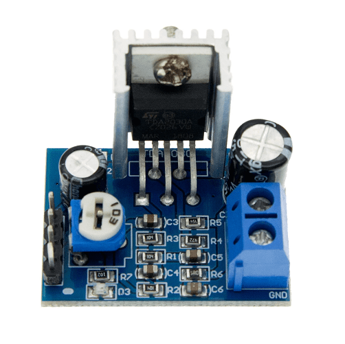 Este módulo funciona para amplificar señales pequeñas de sonido como la de computadores, celulares, MP3, MP4, Tablet, entre otros y poder escucharlas a través de un parlante de buena capacidad.