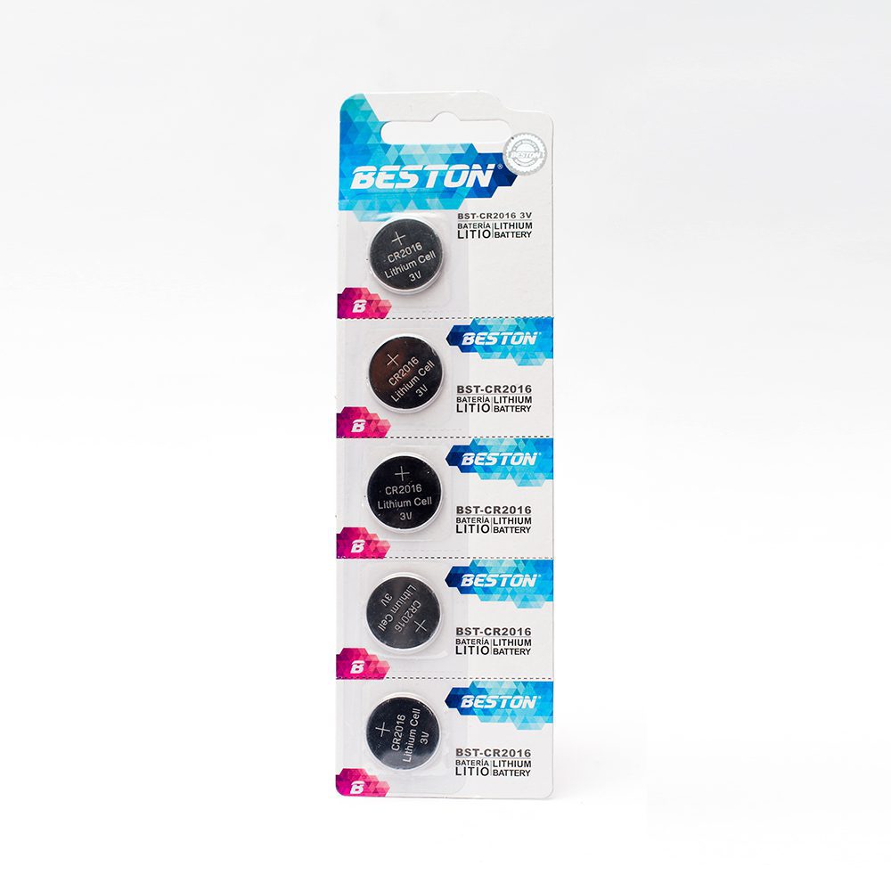 Batería de litio CR2016 Beston 3V, 90 mA. Compacta, ligera y confiable, ideal para relojes, calculadoras y dispositivos electrónicos pequeños.