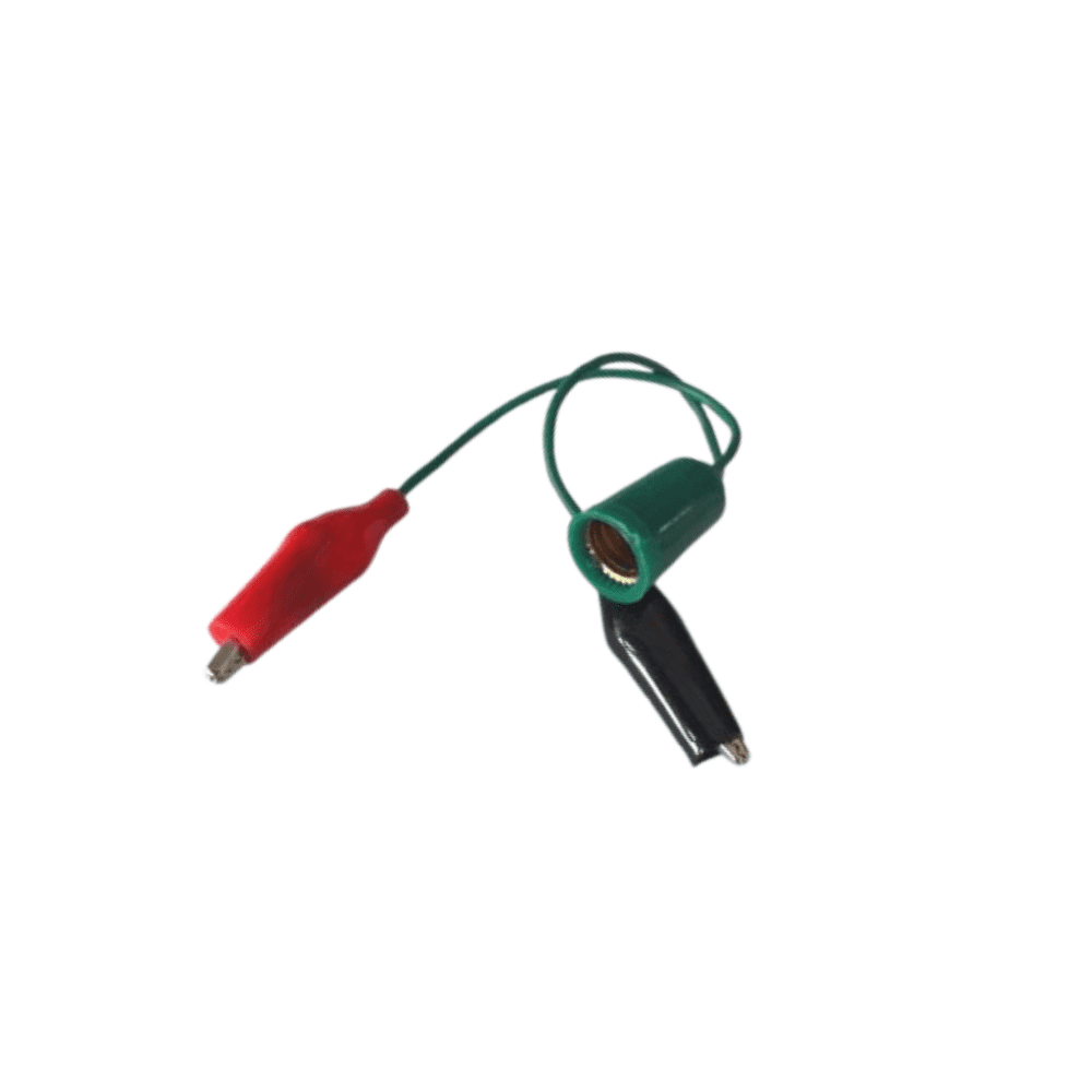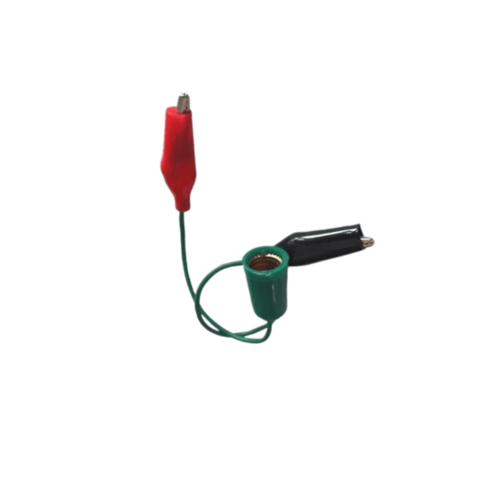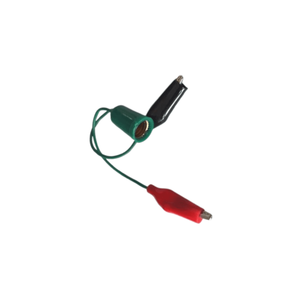 Cable caimán para bombillo E10 pequeño, resistente y fácil de usar para conexiones rápidas y seguras.