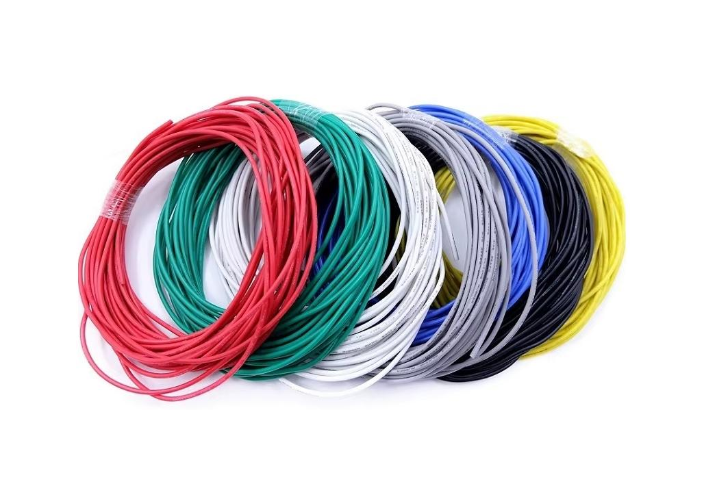 Cable eléctrico 30 AWG con aislamiento de silicona, alta flexibilidad y tensión nominal de hasta 3 kV.