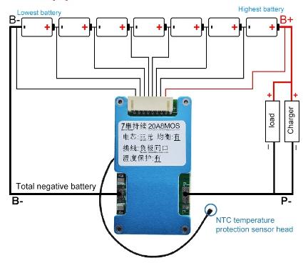 Cargador de baterías de Litio 18650 BMS 7S 20A