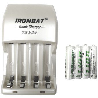 Cargador Pilas Doble Ironbat AAA/AA + 4 Baterías NiMH
