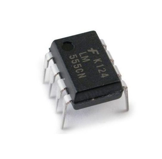 Circuito integrado LM555 para temporizadores, generación de pulsos y sincronización. Alta precisión y bajo consumo para proyectos electrónicos y robótica.