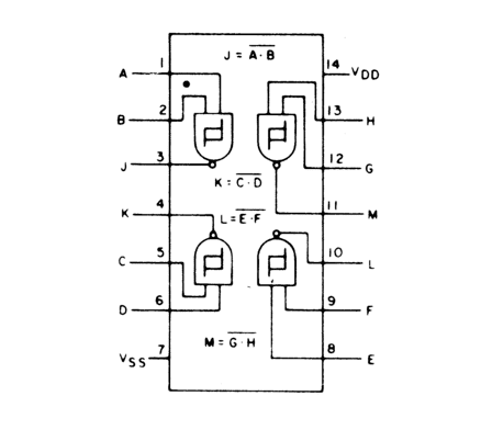 El HEF4093B es una puerta NAND cuádruple de dos entradas.