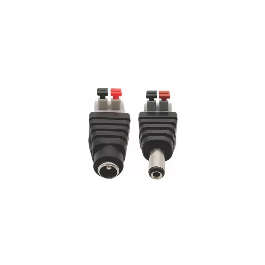 Conector de presión DC de 2 pines, macho o hembra. Ideal para conexiones rápidas sin soldadura en fuentes, cámaras y proyectos electrónicos.