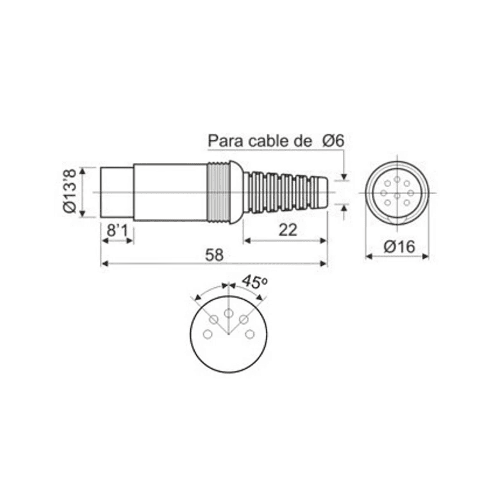 - Tipo: Plug DIN macho aéreo.