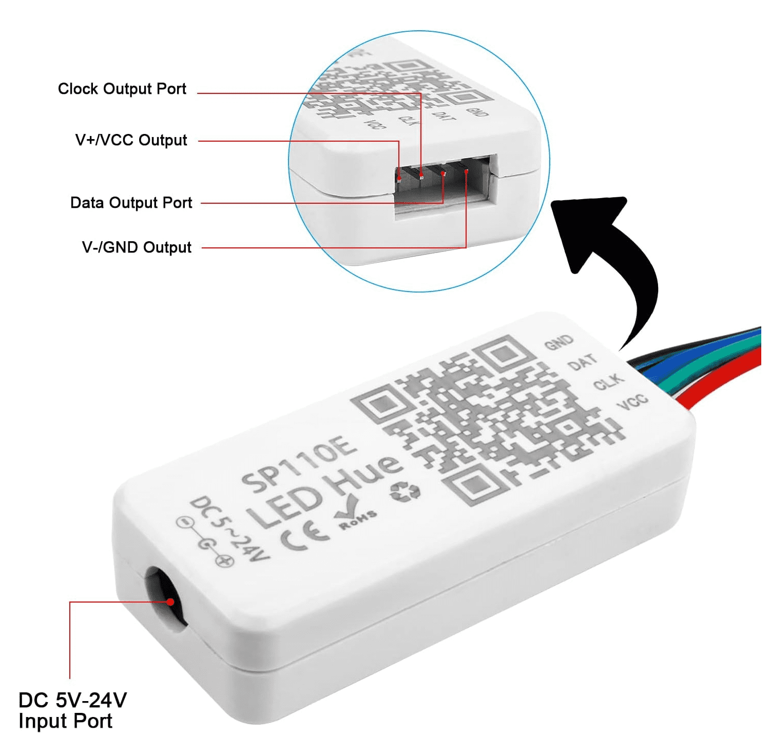 Controlador LED SP110E DC 5–12V con Conexión Bluetooth para Tiras LED WS2811 y WS2812B