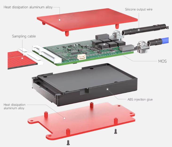 Este BMS incorpora funciones avanzadas de protección contra sobrecarga, sobredescarga, sobrecorriente y cortocircuitos, garantizando la seguridad y prolongando la vida útil de las baterías. Además, cuenta con un sistema de balanceo pasivo que asegura una carga uniforme entre las celdas, mejorando la eficiencia y el rendimiento del sistema.