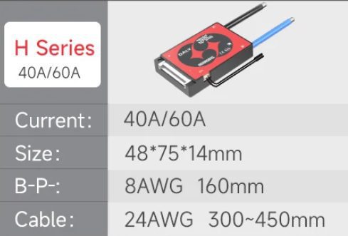 • 1 x DALY BMS 16S 40A 60V H Series.