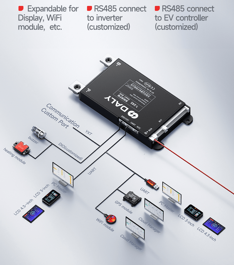 Funciones destacadas de Daly Smart BMS 7S–24S 40A Bluetooth
