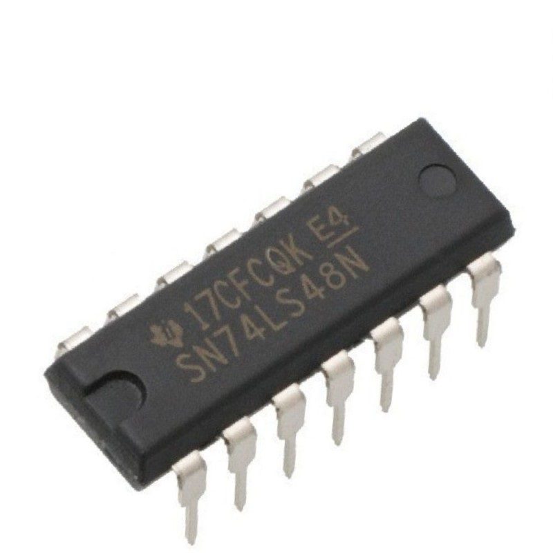 Decodificador TTL SN74LS48N especializado en conversión BCD a 7 segmentos con cátodo común. Ideal para control preciso de displays en proyectos electrónicos e ingeniería.