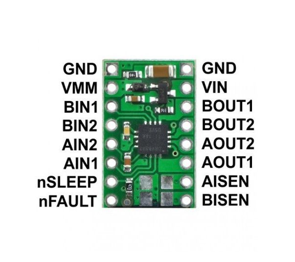 Con un rango de tensión de operación de 2.7 V a 10.8 V, este driver es compatible con microcontroladores de 3 V y 5 V, asegurando versatilidad en diferentes plataformas de control, incluidos Arduino y otros sistemas embebidos. Su diseño compacto y eficiente minimiza la pérdida de energía y permite integrarlo fácilmente en chasis de robots o prototipos.