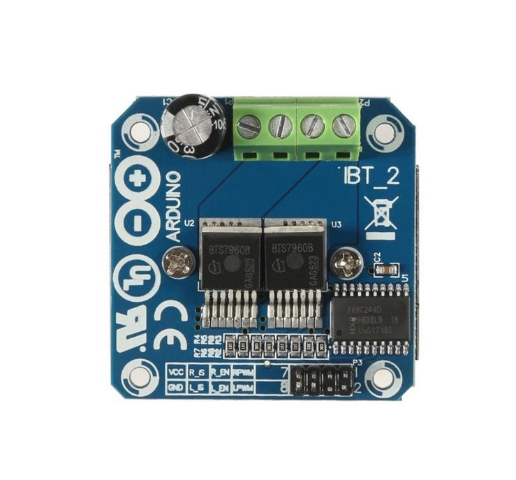 El Driver Puente H BTS7960 43A es un módulo de control de motores DC de alto rendimiento, diseñado para aplicaciones que requieren gran potencia y confiabilidad. Basado en el chip BTS7960, junto con el buffer Schmitt-trigger 74AHC244, este controlador ofrece un diseño robusto para manejar corrientes de hasta 43A con voltajes de operación entre 5V y 27V.