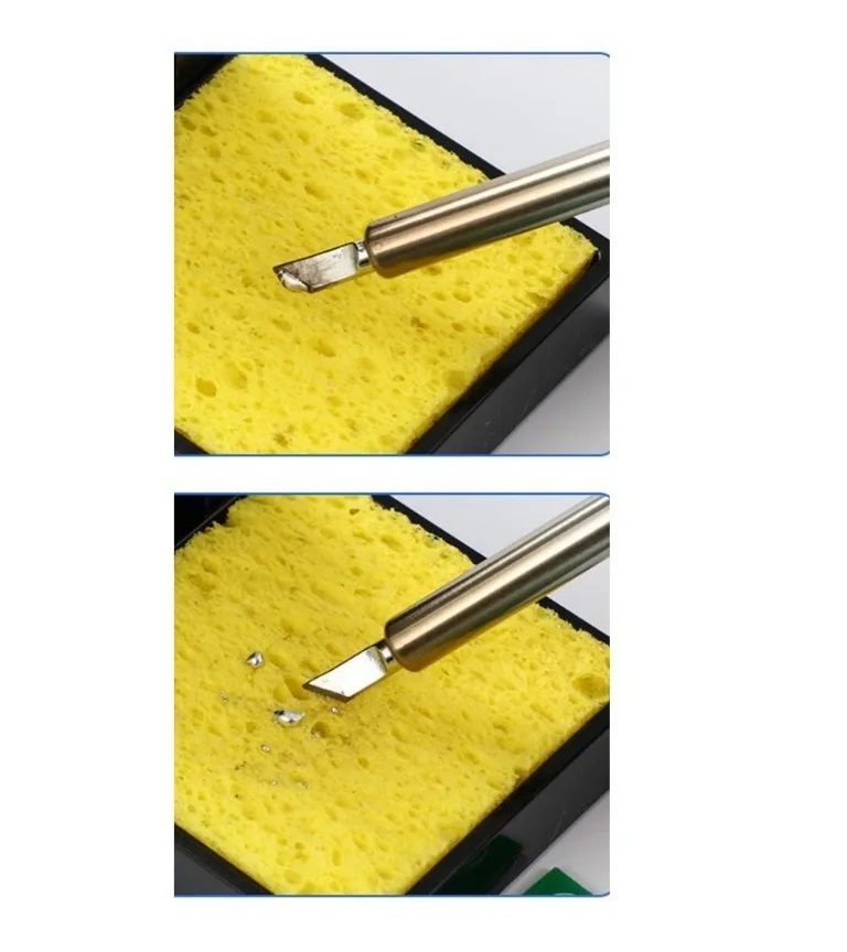 Para un rendimiento óptimo, se recomienda humedecer la esponja antes de usar, lo cual ayuda a reducir el calor y prolongar la duración de las puntas del cautín. Su diseño simple pero funcional la convierte en un accesorio imprescindible para técnicos, ingenieros y aficionados a la electrónica.