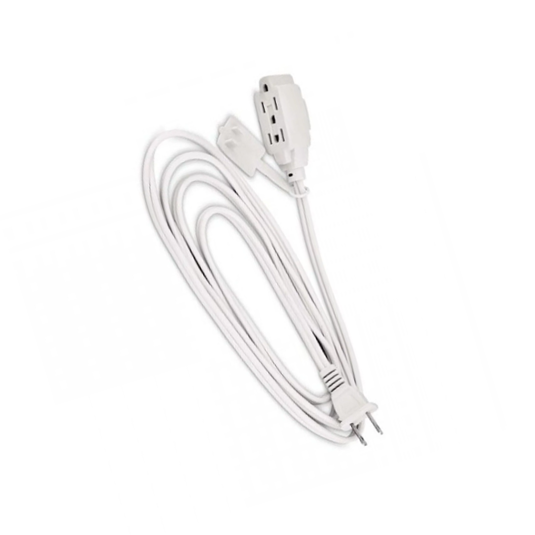 Extensión eléctrica blanca sencilla ideal para conectar y alimentar diferentes dispositivos eléctricos y electrónicos en el hogar, oficina o taller. Diseñada para ofrecer seguridad, practicidad y durabilidad, esta extensión facilita el acceso a tomacorrientes cuando la distancia es limitada.