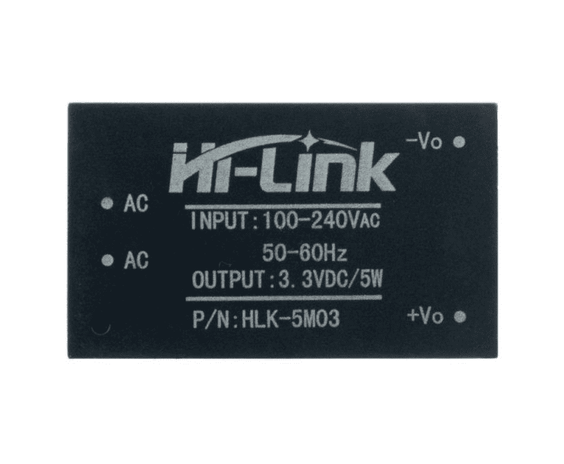 La fuente de alimentación embebida HLK-5M03 es ideal para alimentar microcontroladores, sensores, sistemas de comunicación inalámbrica y proyectos IoT que requieren voltaje de 3.3V estable.