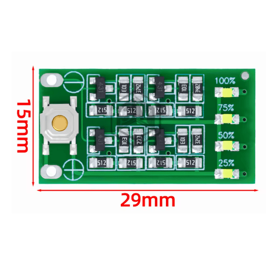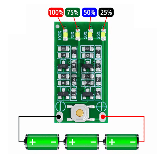l Indicador de Carga para Batería LiPo 3S (11.1V) es un módulo práctico diseñado para monitorear el nivel de voltaje de baterías LiPo de 3 celdas (3S). Proporciona una referencia visual clara del estado de carga, ayudando a prevenir sobredescargas que pueden dañar la batería o reducir su vida útil.
