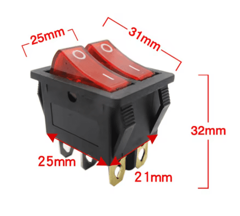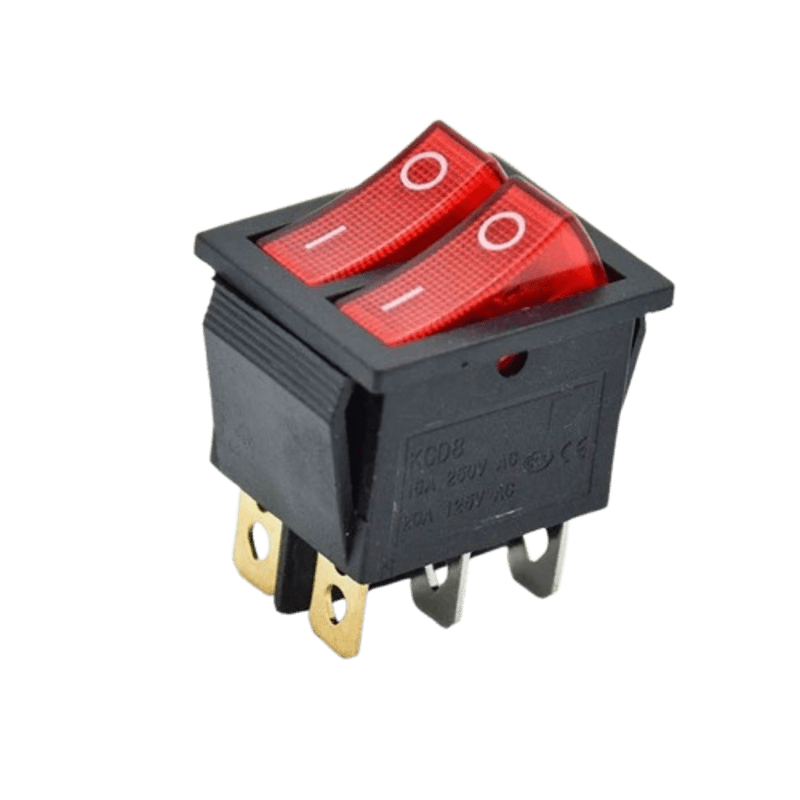 El Interruptor Basculante KCD8 6 Pines 15A/250V Doble Fila es un componente eléctrico de montaje en panel diseñado para la conmutación segura de circuitos de corriente alterna. Su configuración de 6 pines corresponde a un interruptor tipo DPDT (doble polo, doble tiro), permitiendo controlar dos circuitos o invertir polaridad según la conexión.