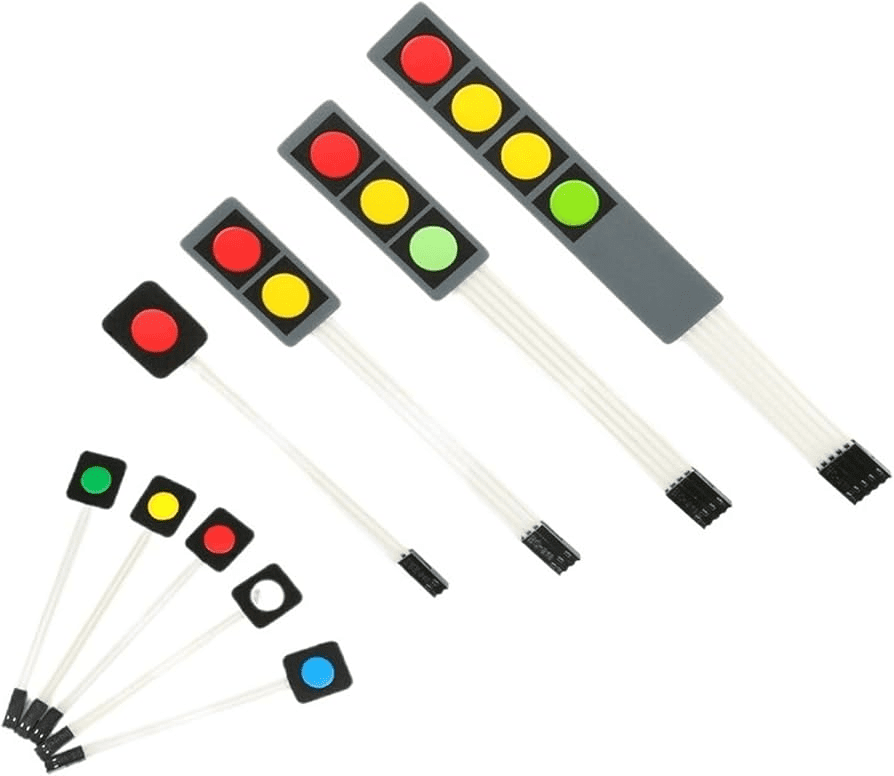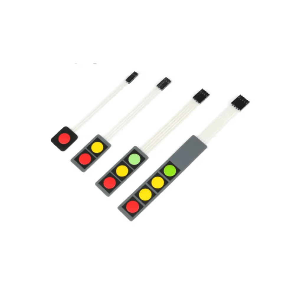 El panel interruptor de membrana botón extendido es un accesorio confiable y duradero diseñado para aplicaciones electrónicas que requieren múltiples teclas de control. Disponible en versiones de 1, 2, 3 y 4 botones, ofrece gran versatilidad en sistemas de automatización, robótica, equipos de prueba y proyectos DIY de electrónica.