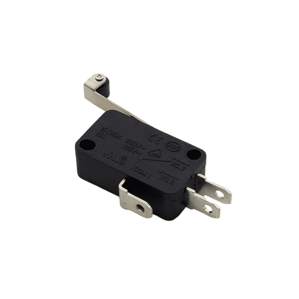 Interruptor KW1-103-7 con palanca larga, compacto y duradero, ideal para finales de carrera y control de posición.