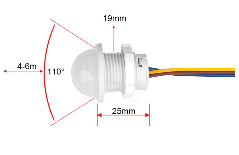 Compatible con un amplio rango de voltaje nominal de 100V a 240V AC, este sensor ofrece alta versatilidad en instalaciones domésticas, comerciales e industriales. Con un ángulo de detección de 110° y una distancia efectiva de 4 a 6 metros, garantiza una cobertura óptima en pasillos, entradas, escaleras o áreas de tránsito frecuente.