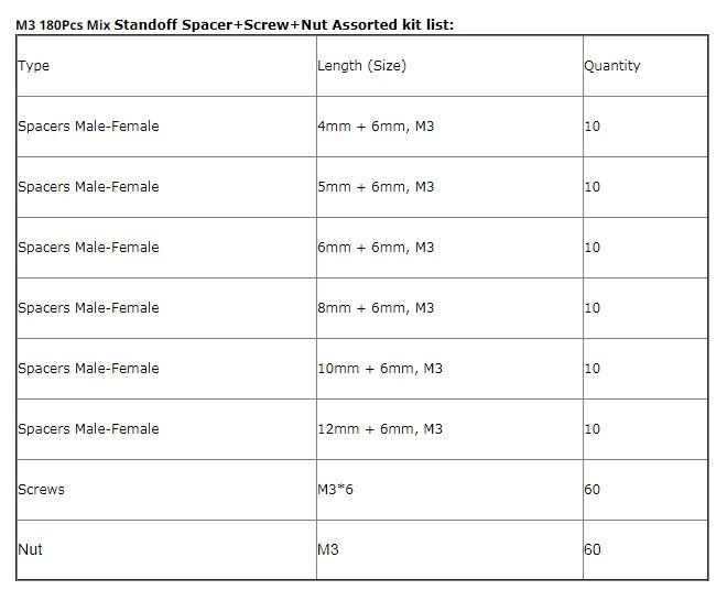 El Kit 180 Separadores Metálicos M3 Macho-Hembra es ideal para técnicos, makers y profesionales que requieren soluciones de montaje organizadas y confiables en proyectos de electrónica, robótica y prototipado.