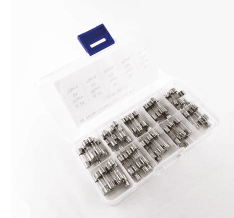 El Kit de Fusibles Eléctricos incluye 100 fusibles de vidrio en diez valores de corriente, garantizando protección precisa y confiable en sistemas eléctricos.