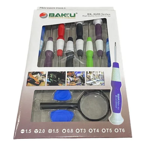 Kit Destornilladores BK-8600-A con 8 destornilladores y lupa. Herramienta confiable para ensamblajes precisos en electrónica y proyectos técnicos.