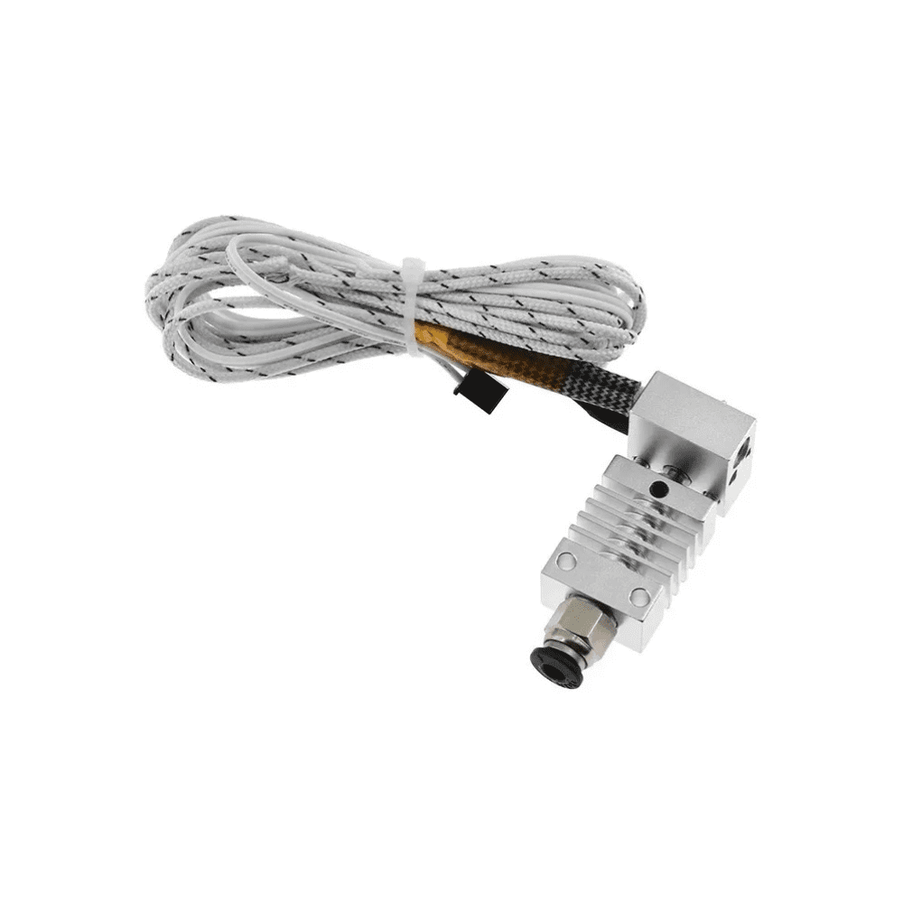 Fabricado con materiales de alta calidad como aluminio, acero inoxidable y latón, este hotend garantiza durabilidad, conductividad térmica óptima y resistencia al desgaste del filamento. Su boquilla de 0.4 mm y el bloque de 20 × 20 × 10 mm permiten una extrusión precisa de filamentos de 1.75 mm. Además, incorpora un termistor HT-NTC100K y un calentador de cartucho cerámico de 12V 50W, asegurando un control térmico estable y uniforme durante la impresión.