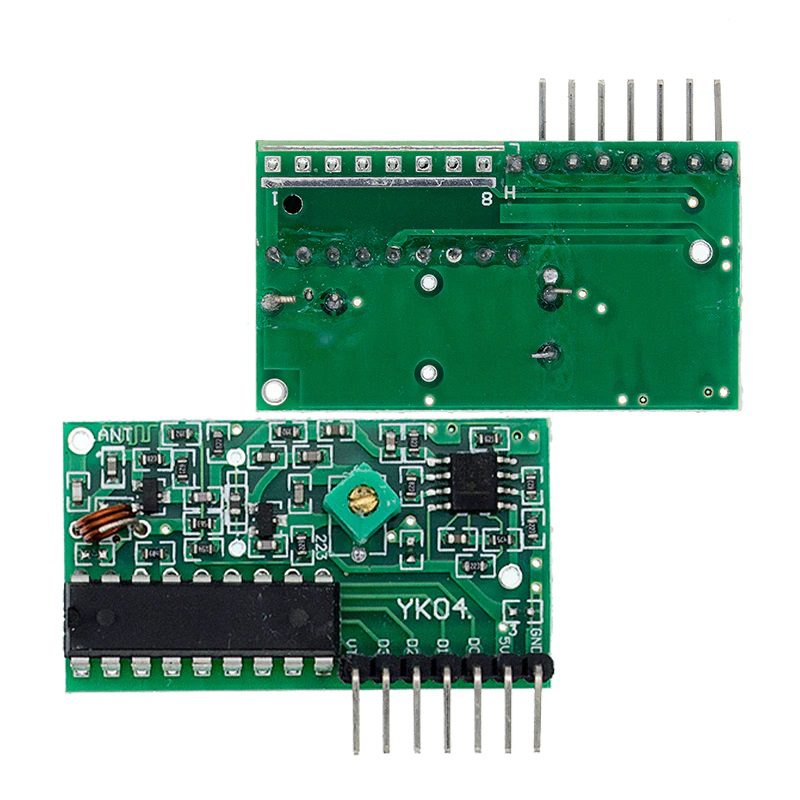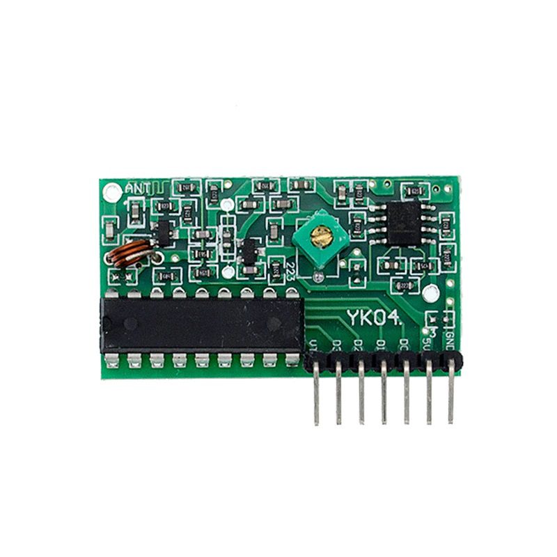 El receptor está diseñado para operar a 5V DC, con una frecuencia de recepción de 433.92MHz y una sensibilidad de -98dBm. Esto permite captar señales a distancias de hasta 60 metros en campo abierto. Aunque no incluye antena externa, su diseño compacto facilita la integración en proyectos de control remoto.