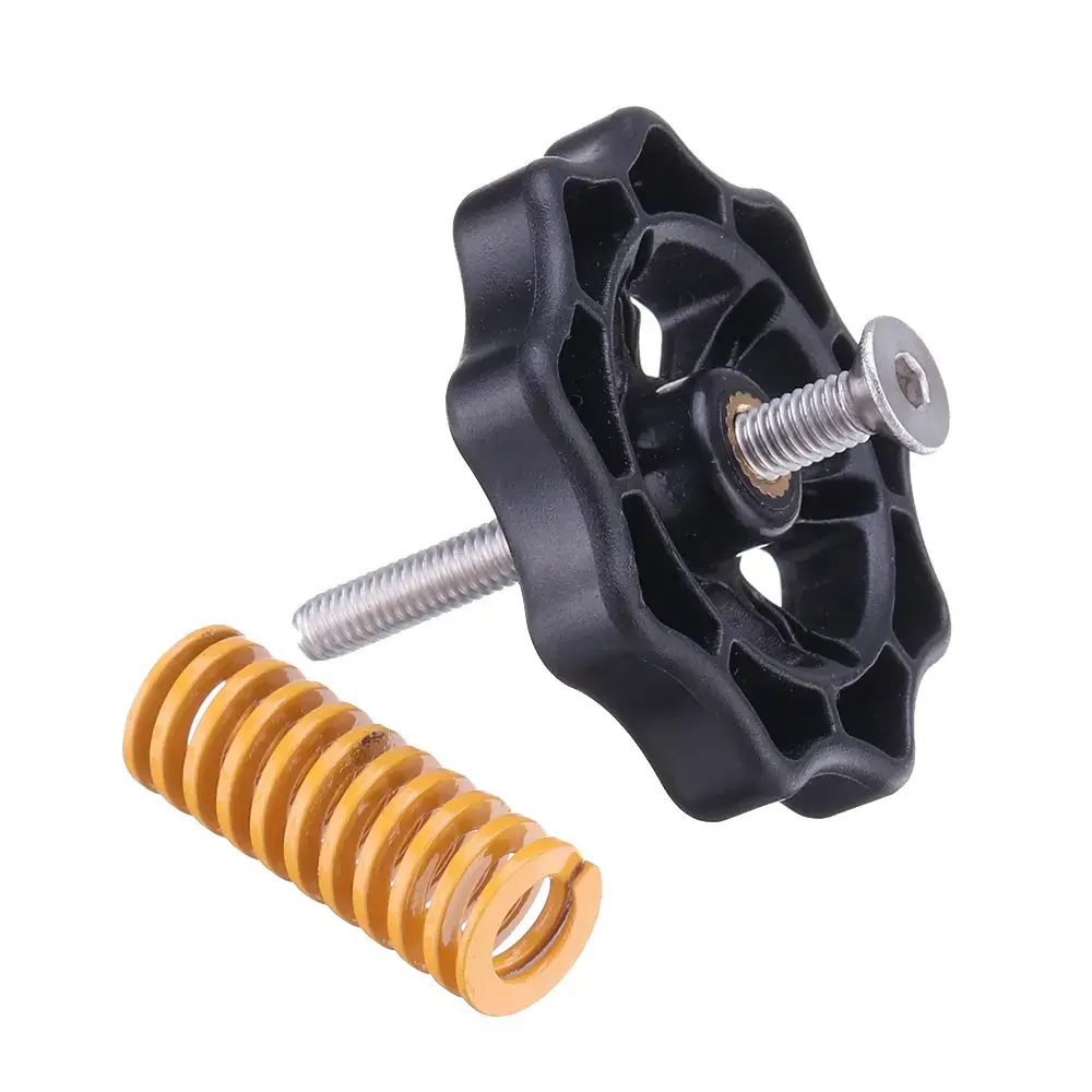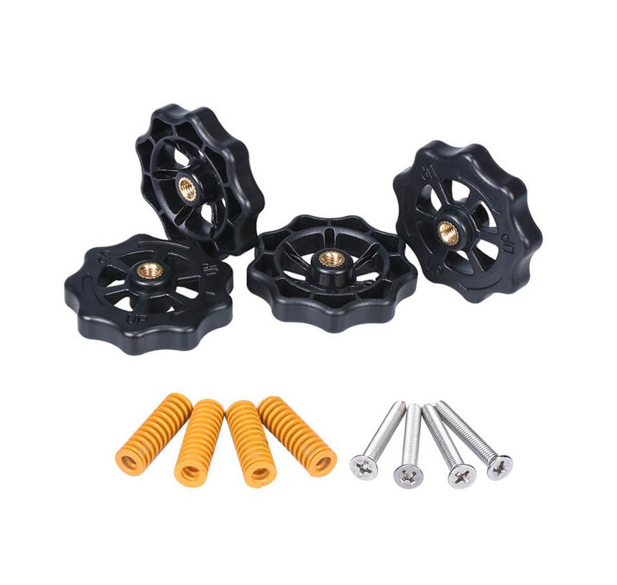 El Kit Nivelación Reforzado para Cama Ender 3 / CR-10 mejora la estabilidad de la base de impresión mediante resortes de alta tensión y tornillos resistentes.