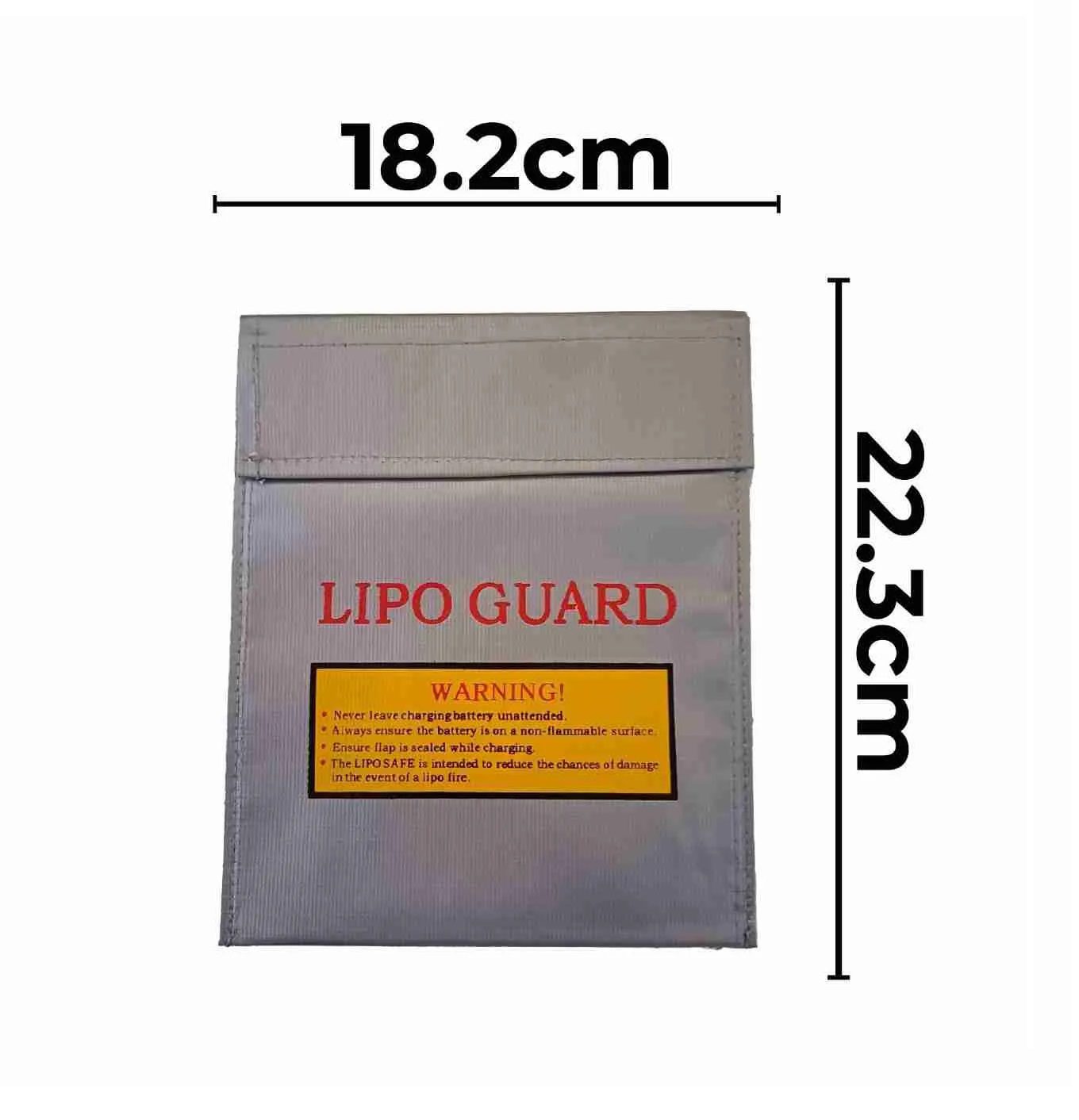 Gracias a su fabricación con material ignífugo y resistente al calor, la LiPo Safe Bag ayuda a contener llamas, chispas y calor en caso de fallo de la batería, minimizando daños al entorno y aumentando la seguridad del usuario. Además, su diseño permite introducir cables de carga sin comprometer la protección, facilitando un uso práctico y confiable.