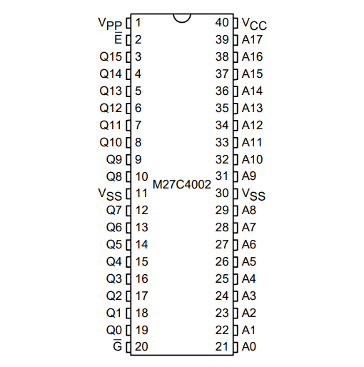 La M27C4002 es una memoria EPROM de 4Mbit, borrable por UV y programable, diseñada para almacenamiento confiable de firmware y datos en aplicaciones electrónicas.