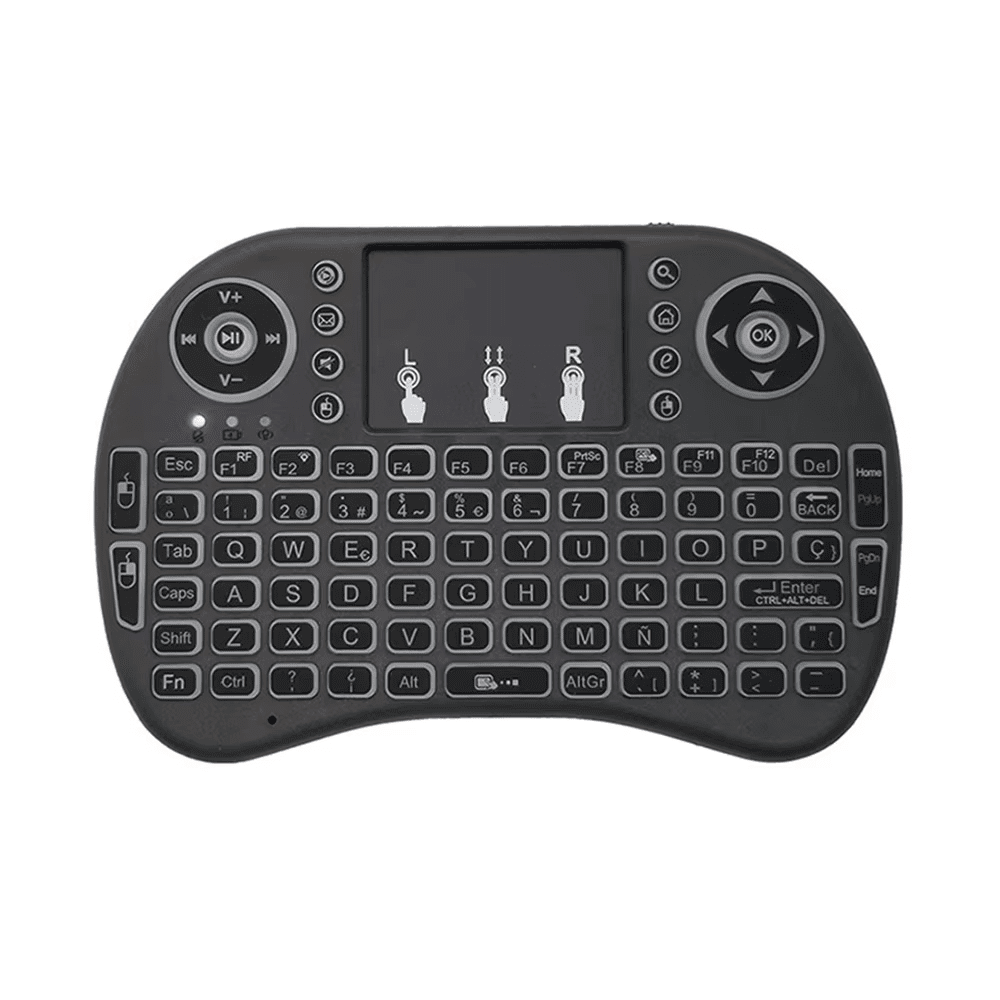 El Mini Teclado Inalámbrico I8 con Touchpad y Retroiluminación 2.4G es un dispositivo de entrada compacto diseñado para el control cómodo de equipos multimedia y sistemas informáticos a distancia. Integra un teclado QWERTY completo y un touchpad multitáctil que permite navegar, desplazar el cursor y ejecutar funciones básicas sin necesidad de un mouse adicional.