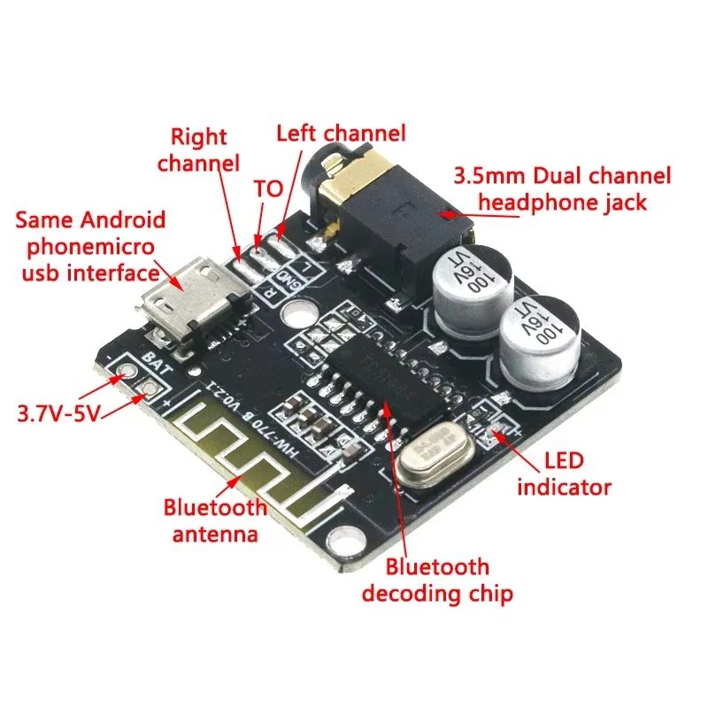 Además, el módulo suele incluir controles básicos y salida de audio estéreo, facilitando la implementación sin necesidad de circuitos complejos. Es ideal tanto para aficionados a la electrónica como para desarrolladores que requieren soluciones rápidas de audio inalámbrico.