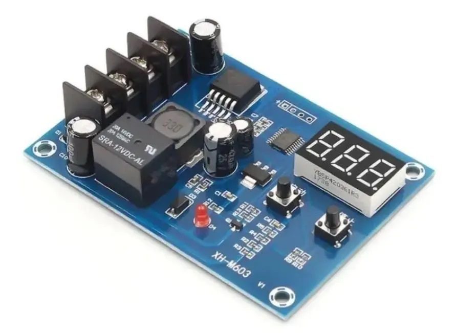 Módulo Control y Cargador de Baterías 12V-24V XH-M603 con detección automática, protección contra sobrecarga y pantalla LED para control preciso en diversos proyectos.