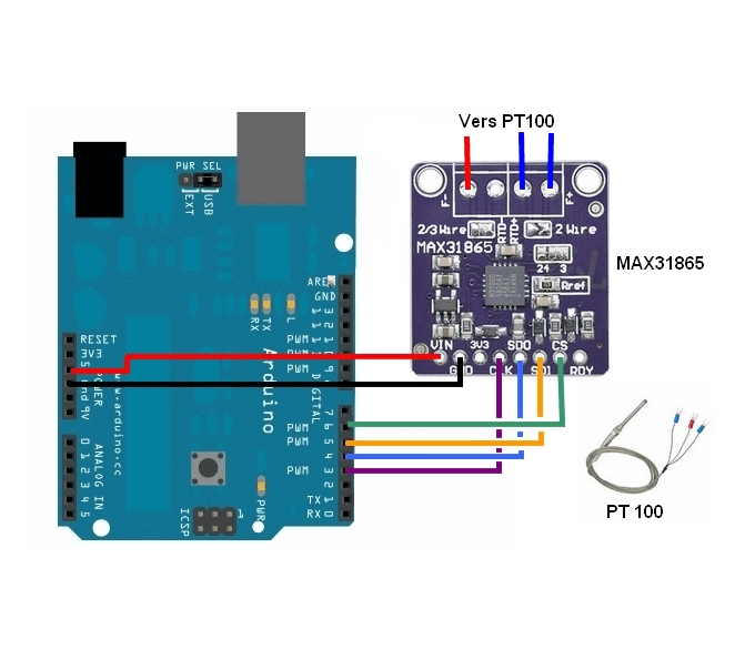 - SDO: Pin de salida de datos serie / salida de sensor de entrada del microcontrolador , para datos enviados desde el MAX31865 a su procesador .