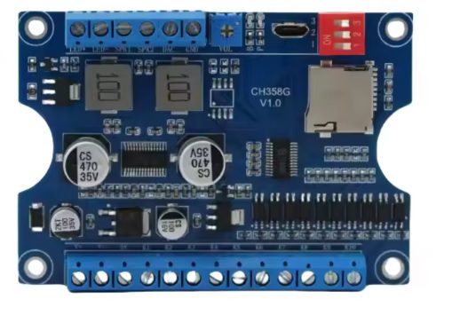 Módulo de voz ch358d diseñado para reproducir audio y mensajes de voz en proyectos electrónicos, integrando un sistema de reproducción compacto y fácil de implementar.