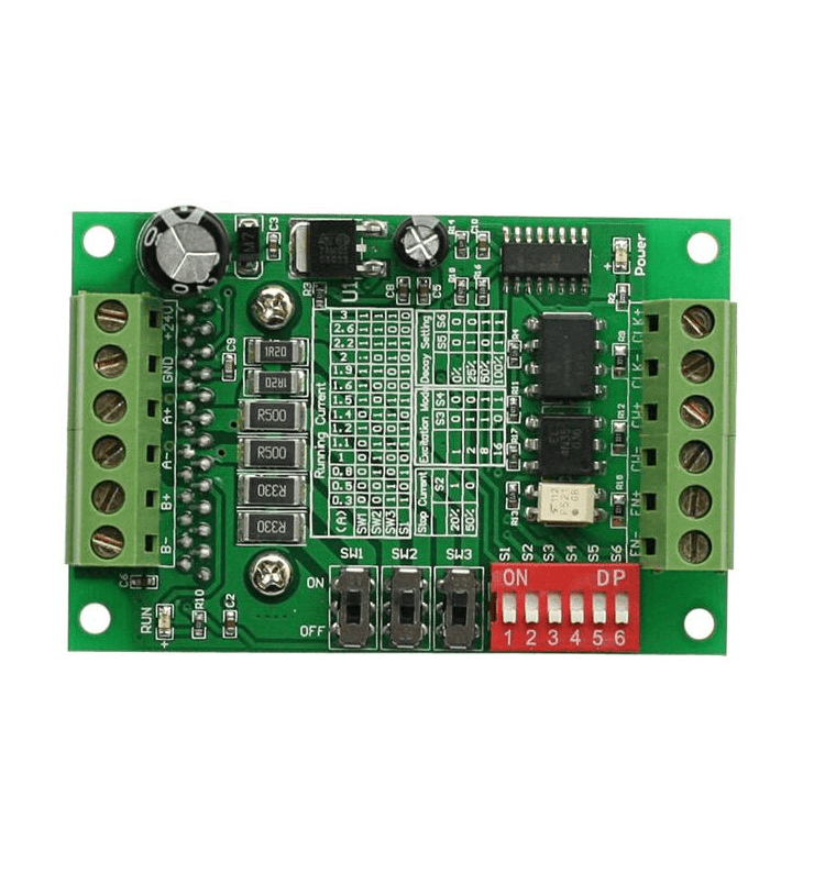 Este controlador incorpora el chip TB6560AHQ de última generación, que ofrece protección contra sobrecorriente, sobrecalentamiento y bajo voltaje, asegurando durabilidad y seguridad en aplicaciones de alta exigencia. Además, incluye un optoacoplador 6N137 de alta velocidad para evitar pérdida de pasos incluso en condiciones de funcionamiento rápido.