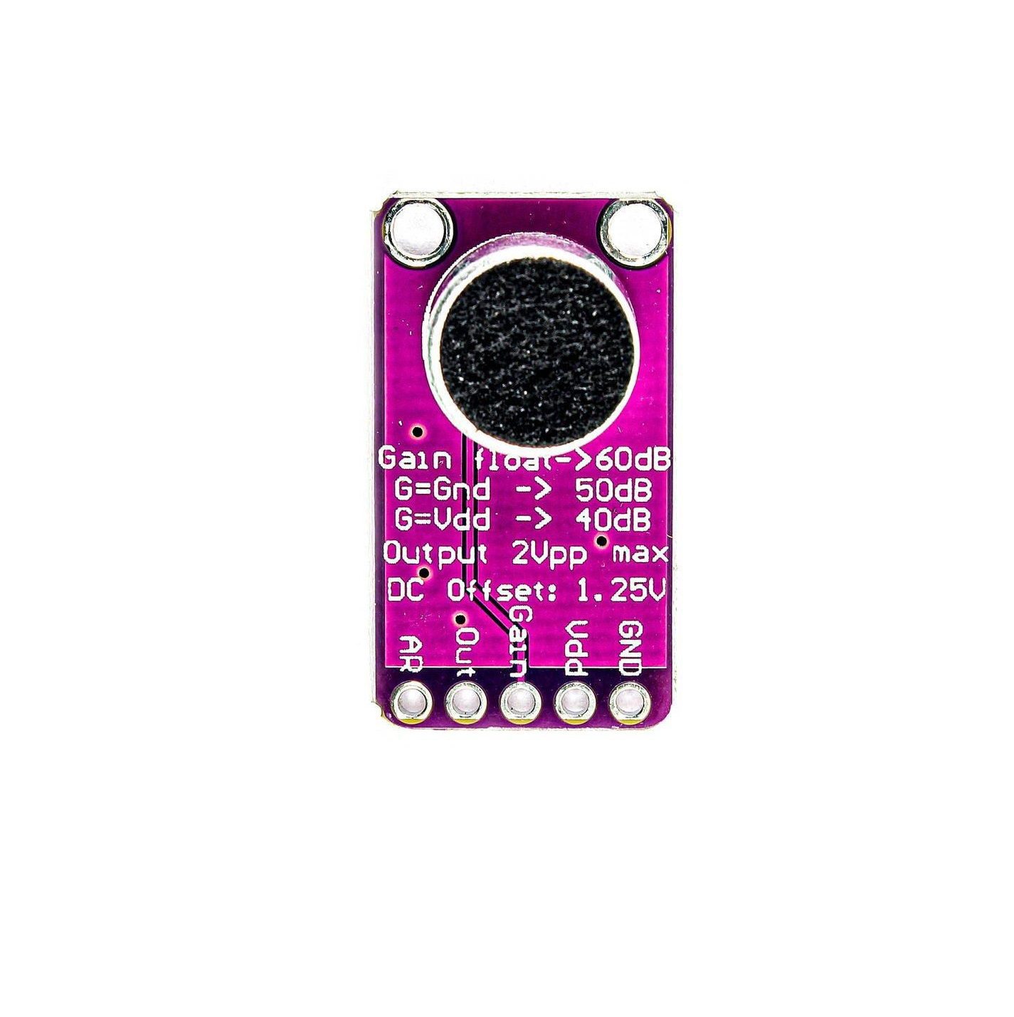 Gracias a su circuito integrado MAX9814, el módulo ofrece una respuesta de frecuencia amplia de 20Hz a 20kHz y una relación de ataque y liberación programable, permitiendo adaptarse a diferentes escenarios de uso. Su ganancia automática puede seleccionarse en tres niveles (40 dB, 50 dB o 60 dB), ofreciendo flexibilidad para diversas necesidades de amplificación de señal.