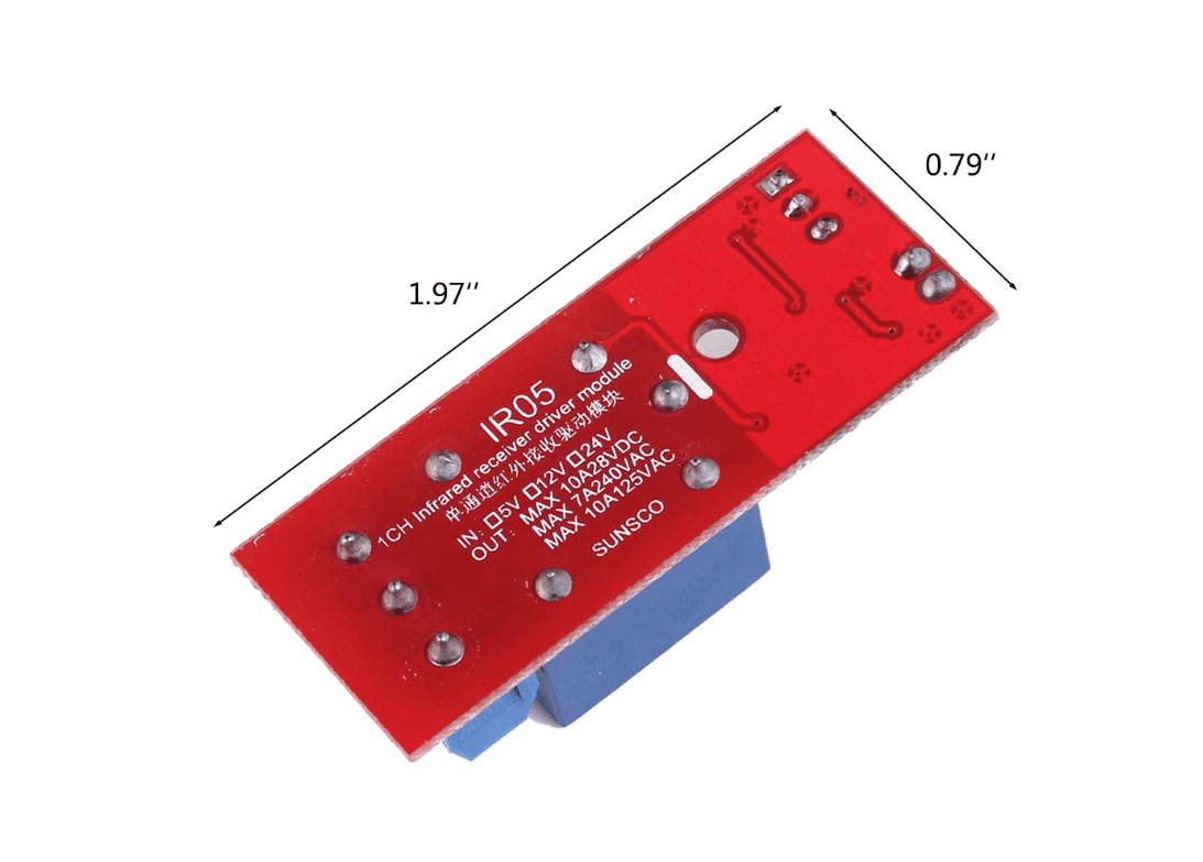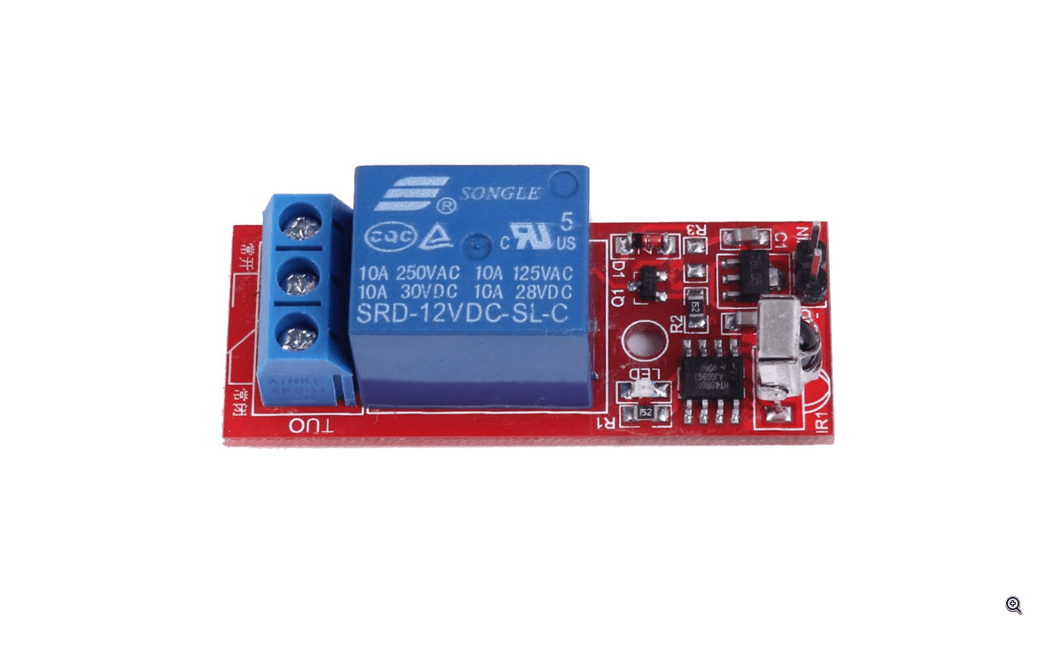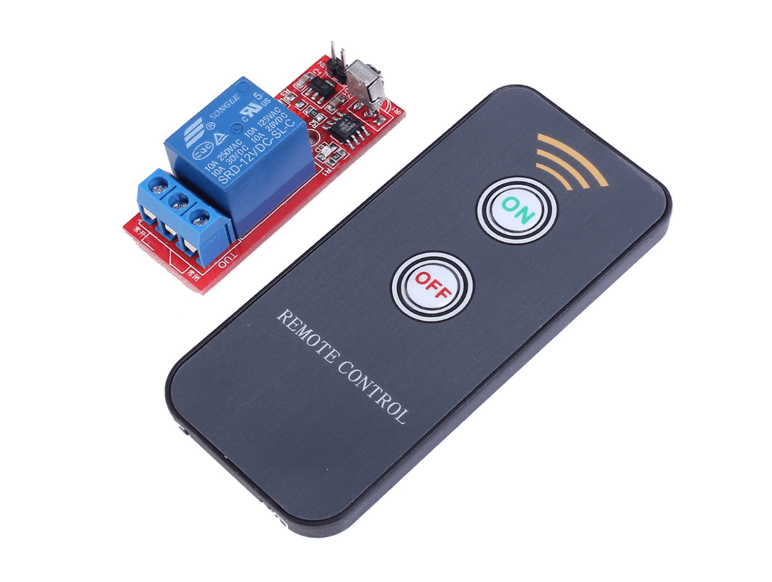 El módulo incluye un control remoto basado en el chip UPD6122 con codificación NED y frecuencia de 38 kHz, permitiendo activar el relé a una distancia máxima de 8 metros. Su diseño incorpora un indicador LED que facilita la supervisión del estado de activación, mientras que el circuito del relé está aislado de la entrada y salida para mayor protección de los componentes electrónicos conectados.