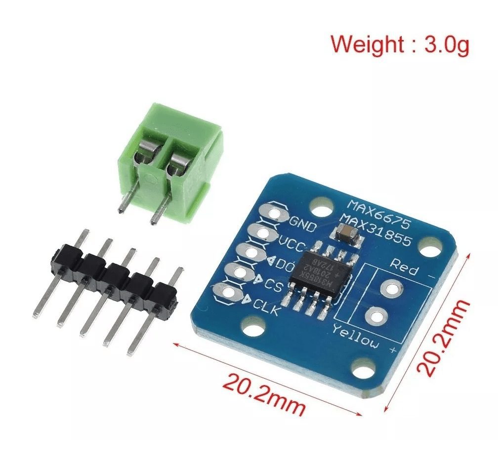 Este módulo es ampliamente utilizado en impresoras 3D, control de hornos, estaciones de soldadura y proyectos de control térmico. El MAX6675 proporciona lecturas estables con resolución de 0.25 °C y es compatible con microcontroladores como Arduino, facilitando su integración en proyectos electrónicos y de automatización.