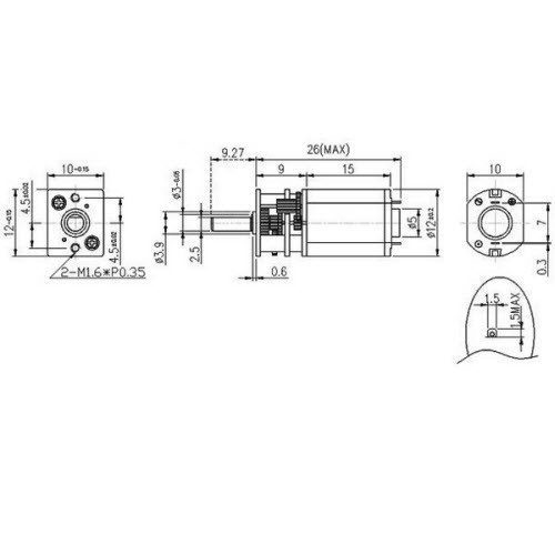 • Par de torsión @ 12V: 0.39 kg·cm