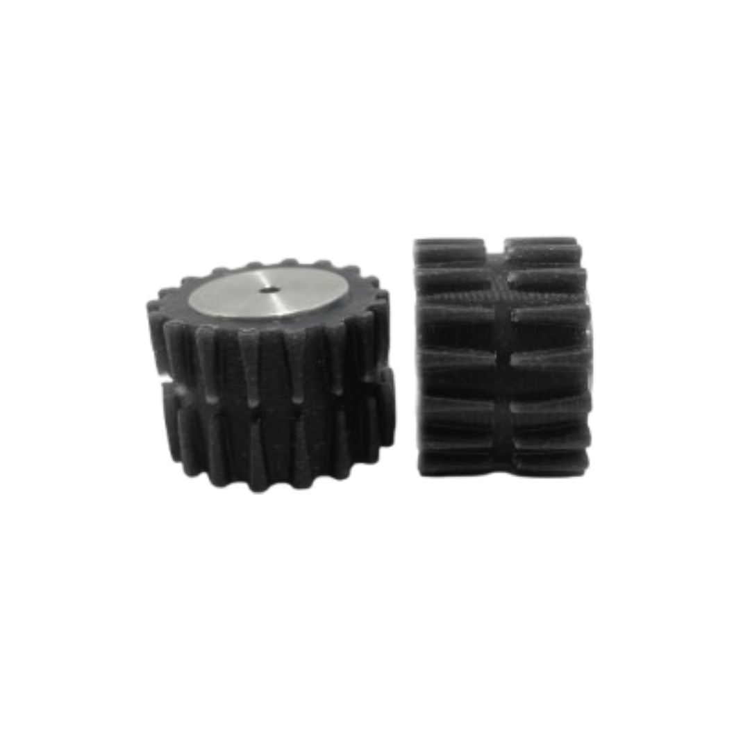 Par de llantas dentadas para robot futbolista diseñado para ofrecer máxima adherencia y rendimiento en competiciones y proyectos de robótica. Estas llantas están fabricadas para brindar precisión, durabilidad y facilidad de instalación, ideales para robots de competencia y educativos.