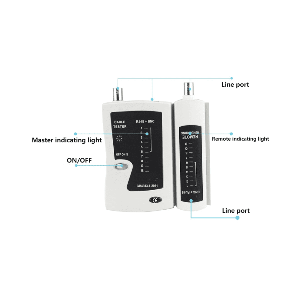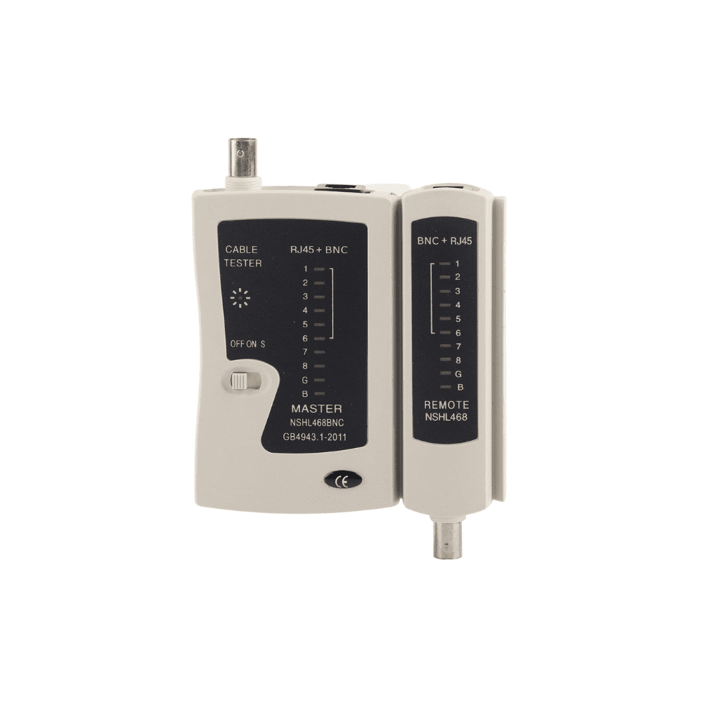 Probador de cables de red profesional YG468B, diseñado para verificar la continuidad, conexión y correcto funcionamiento de cables RJ45, RJ11 y BNC de manera rápida y confiable. Ideal para técnicos, instaladores y aficionados de redes, este dispositivo asegura diagnósticos precisos evitando fallas en la instalación o mantenimiento de sistemas de comunicación.